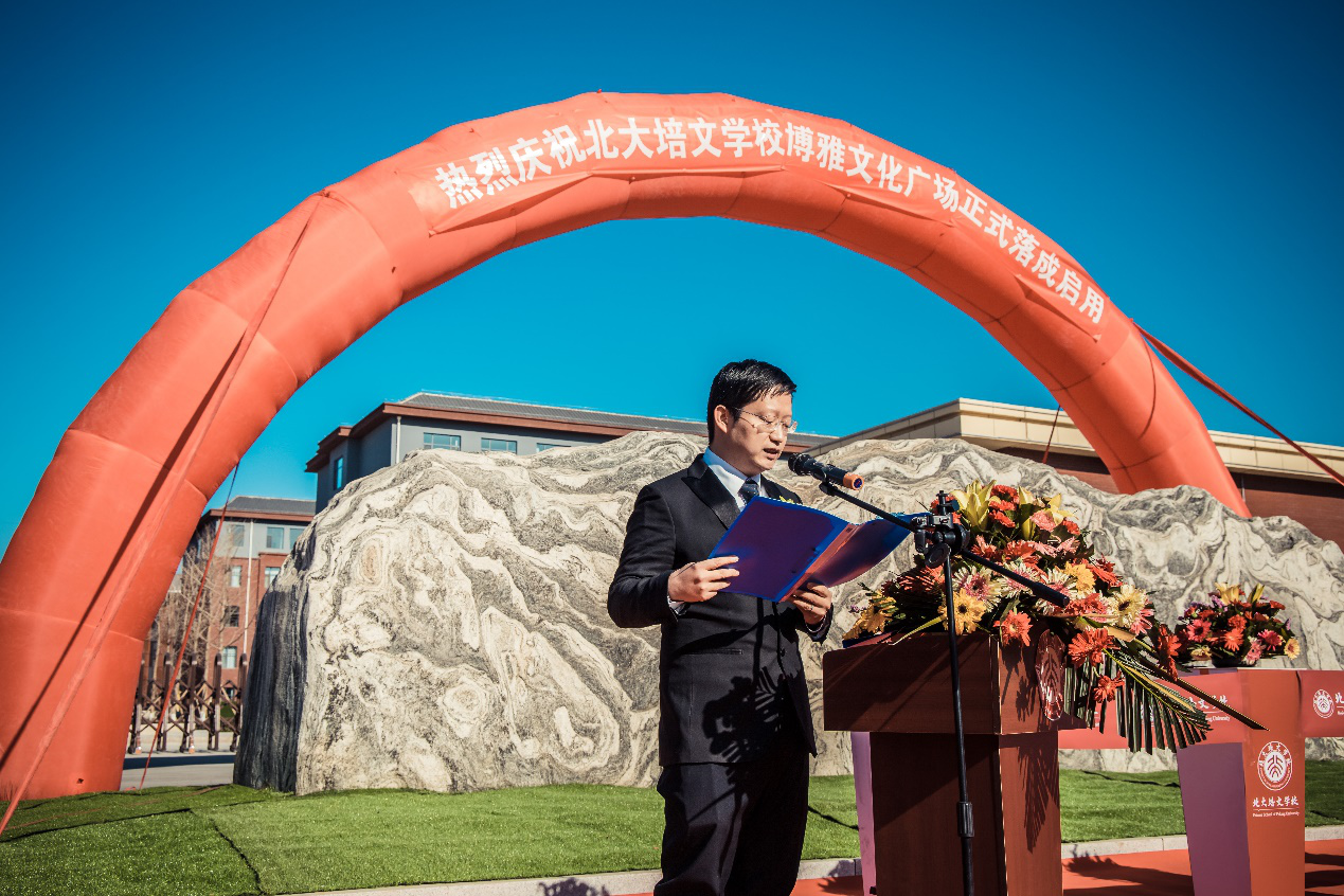 而后,由北大培文學(xué)校丁時(shí)輝副校長(zhǎng)致辭,丁副校長(zhǎng)首先對(duì)參與學(xué)校建設(shè)、支持學(xué)校發(fā)展的各單位、社會(huì)各界人士表示誠(chéng)摯的感謝。他表示,作為教育工作者,一定會(huì)珍惜、維護(hù)優(yōu)良的教學(xué)環(huán)境,鞠躬盡瘁為廣大師生提供精心服務(wù),全心全力踐行北大培文學(xué)校做真教育的教學(xué)理念,為當(dāng)?shù)亟逃降奶嵘c發(fā)展做出應(yīng)有的貢獻(xiàn)。