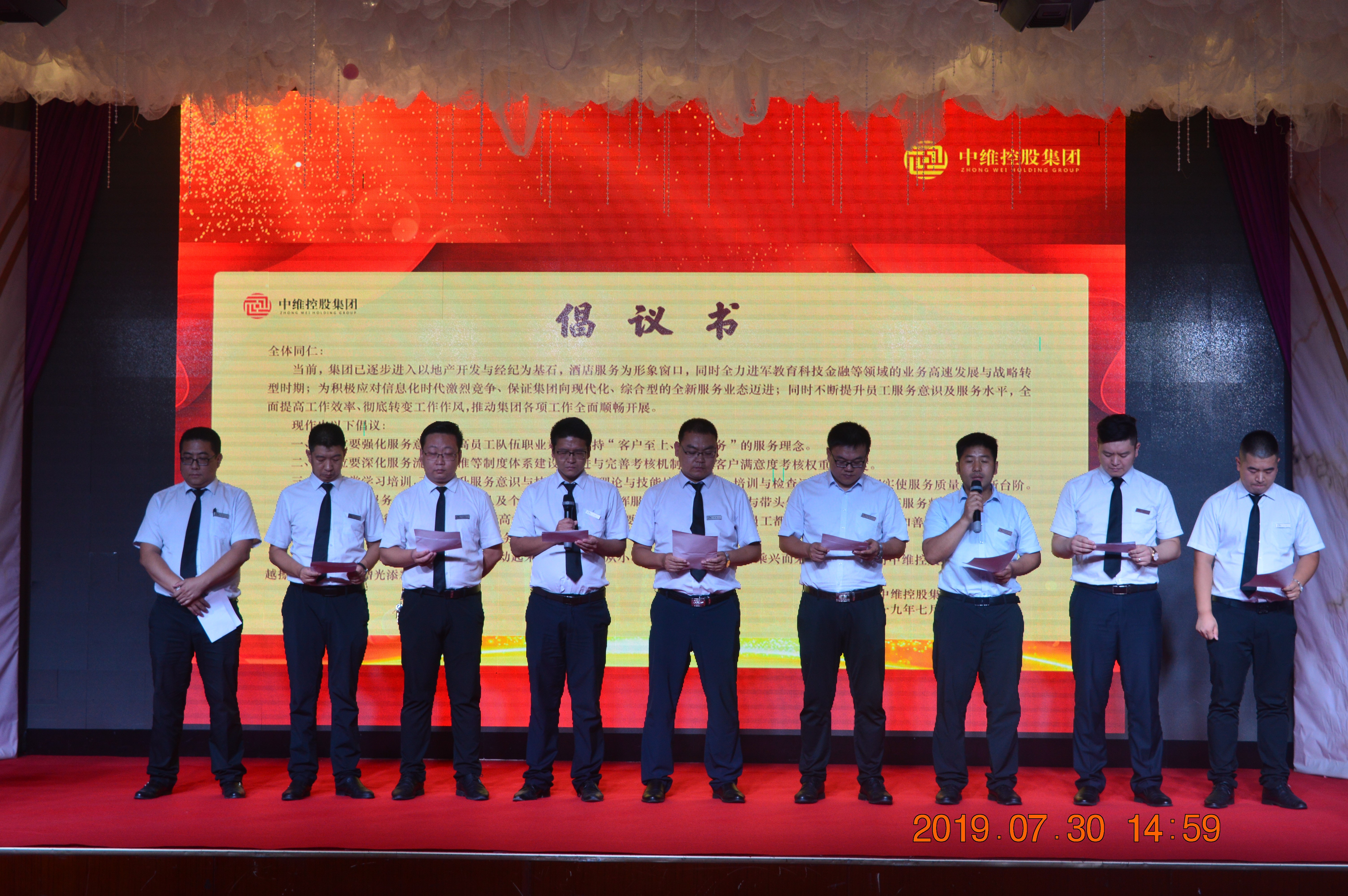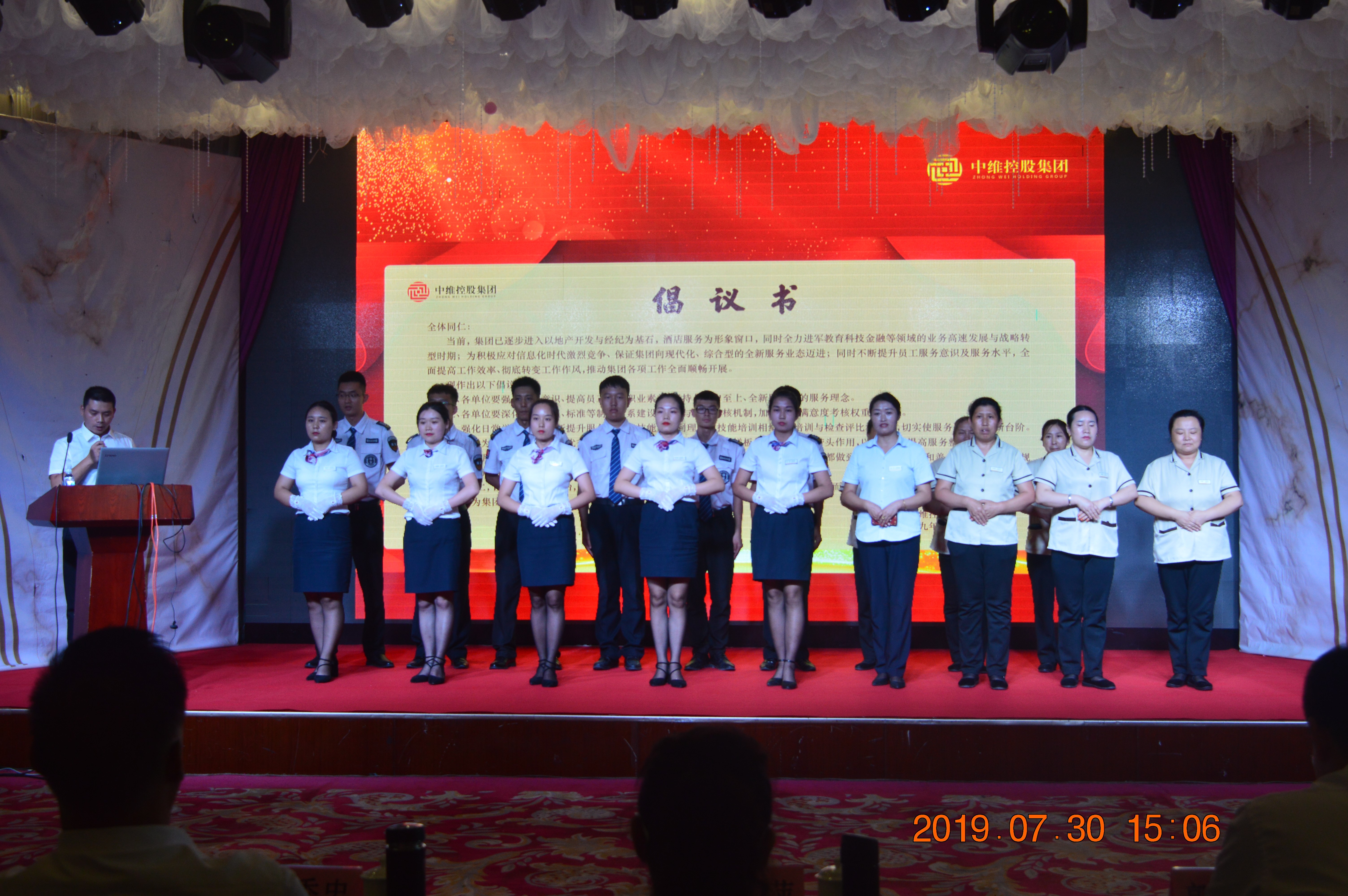 為提升員工的服務(wù)意識(shí)和服務(wù)水平,促進(jìn)企業(yè)的整體發(fā)展,2019年7月30日,中維控股集團(tuán)全體員工在星雅名都酒店六層西會(huì)議廳舉行“提升服務(wù)動(dòng)員大會(huì)”,董事長(zhǎng)郭秀忠,副董事長(zhǎng)王文萍、郭雅維,總裁郭雅磊等領(lǐng)導(dǎo)出席會(huì)議。本次會(huì)議的主題為“提高服務(wù)意識(shí),提升服務(wù)水平;提高工作效率,轉(zhuǎn)變工作作風(fēng);推動(dòng)下半年工作全面開(kāi)展”。