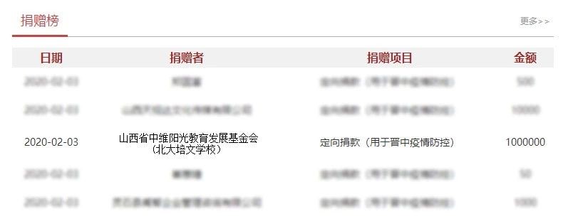 202023日,山西省中維陽光教育發(fā)展基金會(huì)攜北大培文學(xué)校共同捐資人民幣100萬元,用于疫情防控工作。