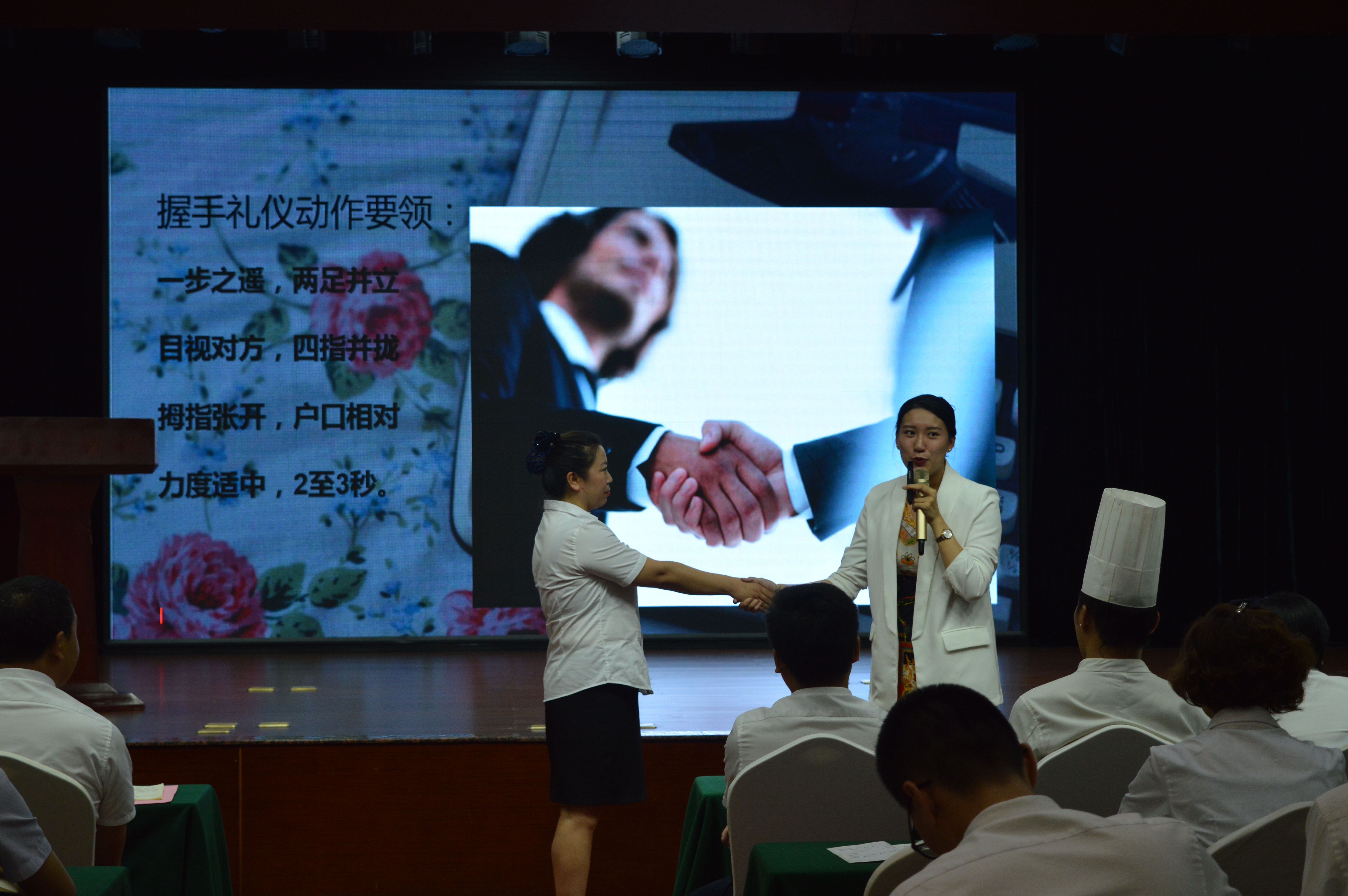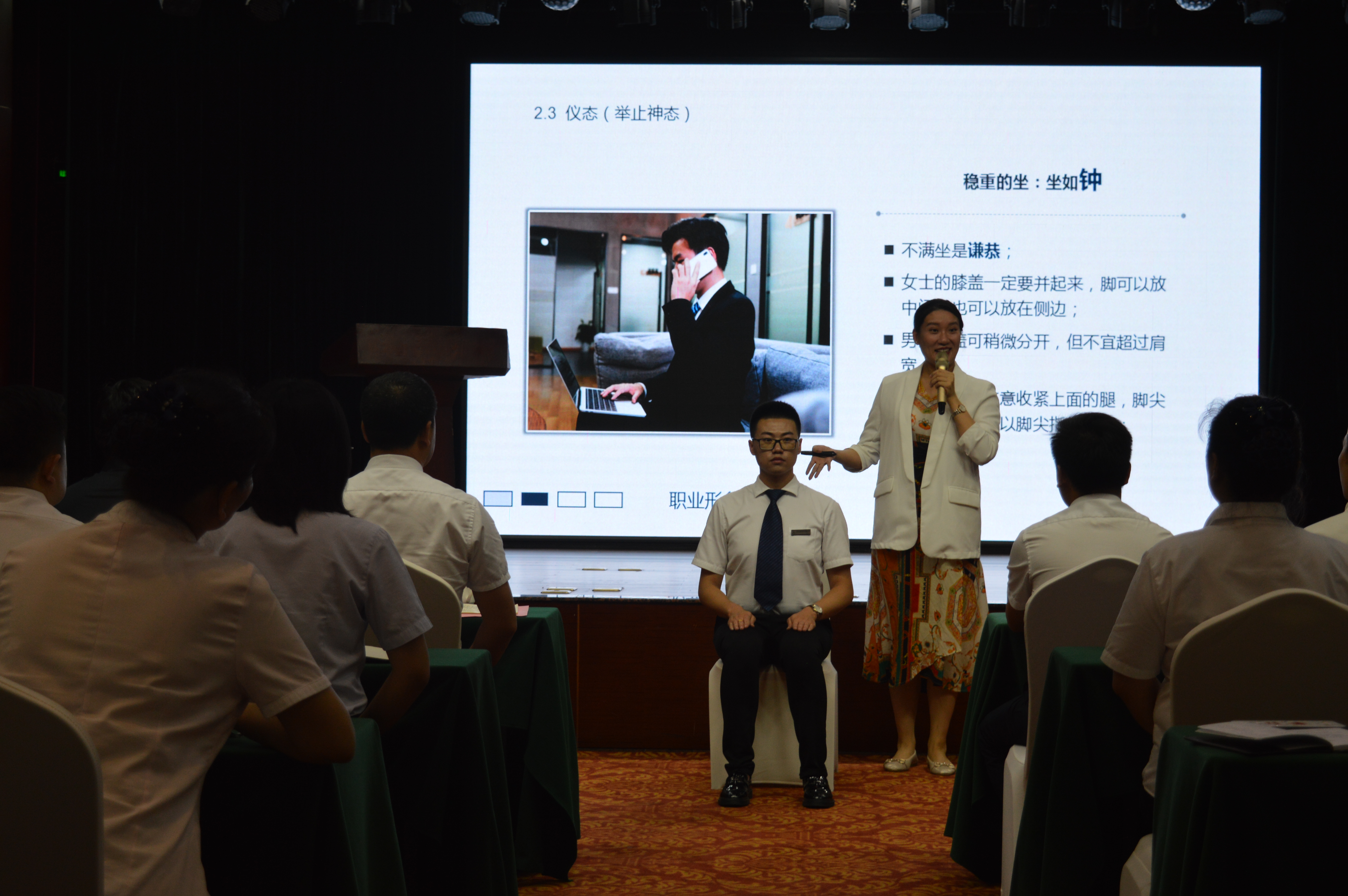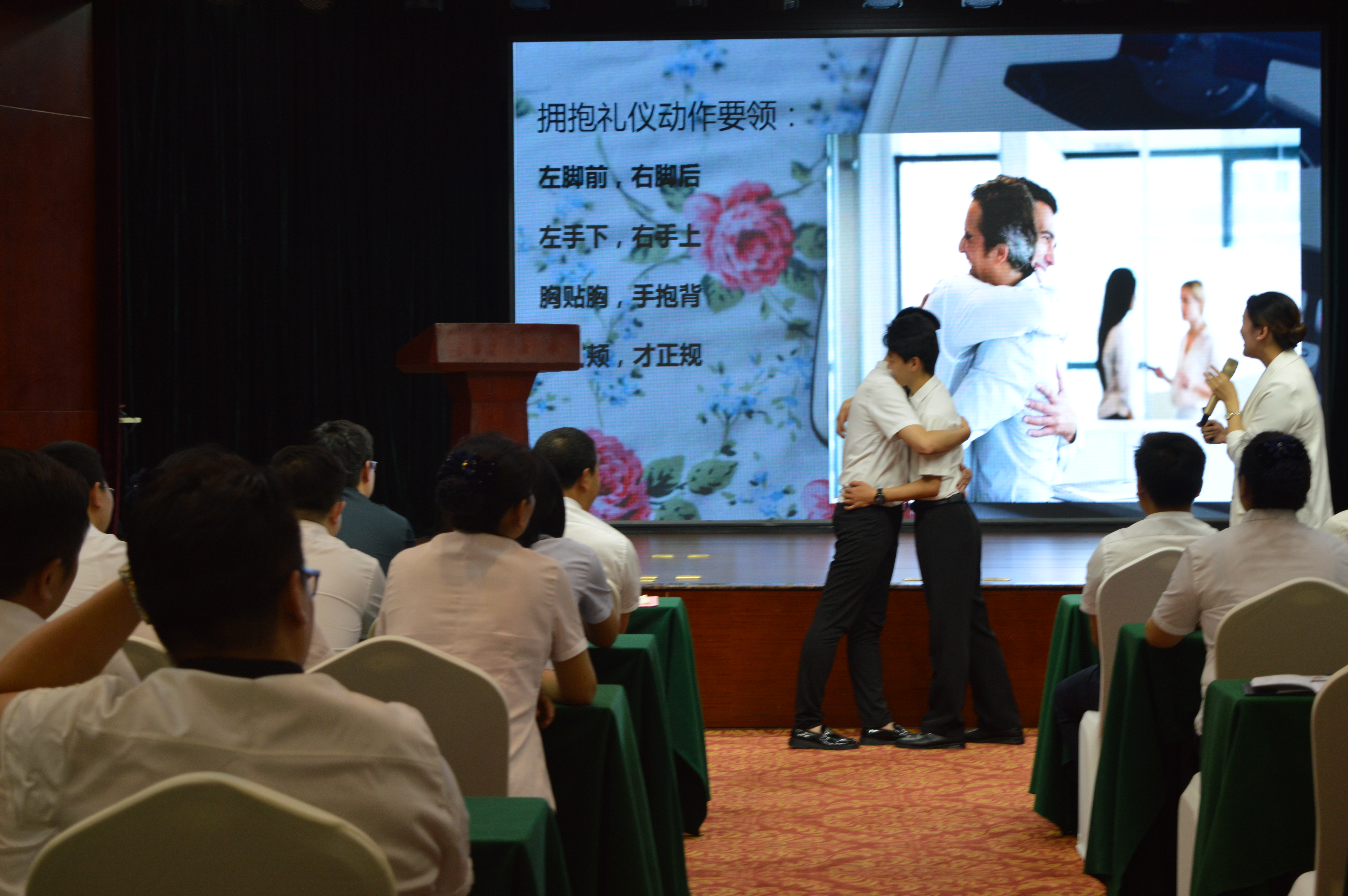嘉賓曹老師為大家進(jìn)行了精彩而生動(dòng)的服務(wù)禮儀培訓(xùn),曹老師從日常的儀表、站姿、坐姿、行走、擁抱、握手、鞠躬等禮儀規(guī)范方面,邀請(qǐng)現(xiàn)場(chǎng)員工互動(dòng)參與并示范講解,另外通過(guò)案例與影片分享,闡釋了服務(wù)美學(xué)的重要意義,以及如何從基本的服務(wù)到滿意的服務(wù)再到感動(dòng)的服務(wù)?,F(xiàn)場(chǎng)教學(xué)氛圍活躍,精彩處引發(fā)陣陣掌聲。